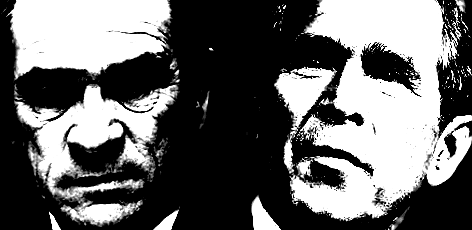 Ich bügle gerade, der Fernseher läuft, da sehe ich ihn plötzlich, den Bösewicht Nummer eins des 21. Jhdt., George W. Bush. Er ist unterwegs mit Tommy Lee Jones, beide haben eine Große Flinte in der Hand. Von Presse und Bodyguards bewacht, marschiert der Präsident der Vereinigten Staaten von Amerika mit seinem Schauspielerfreund über einen Golfplatz, auf der Jagd. Von Loch zu Loch spazieren sie über das perfekt gepflegte, leuchtende Grün, man kann nicht hören, über was sie sich unterhalten. Dann wieder ein Schuss, Bush hat eine Taube erwischt. Tommy schießt auch, die Kamera fängt nicht ein, was er vielleicht getroffen haben könnte, dann der Unfall. Bush erwischt eine weitere Taube, Tommy bricht zusammen, er liegt stammelnd auf dem Boden, eine Hand am Hals, er blutet, was war passiert?
